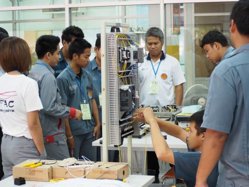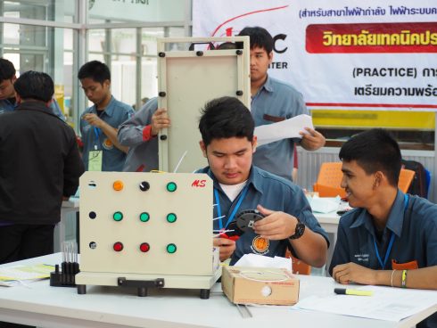 – สาธิตการประกอบและวายริ่งตู้ควบคุมไฟฟ้ามาตรฐานญี่ปุ่น