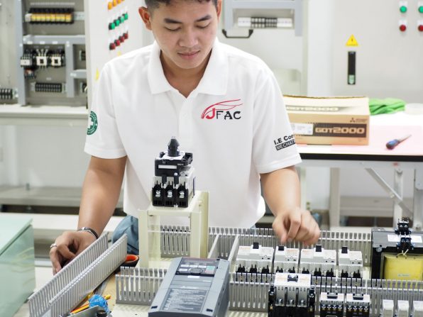 หากคุณเป็นคนหนึ่งที่มีความต้องการเรียนรู้ ศึกษาค้นคว้าด้วยตัวเอง นี้คืออีกหนึ่งบริการจากใจ JFAC Training Center[/vc_column_text][vc_single_image image=”1462″ img_size=”full” alignment=”center” style=”vc_box_shadow_3d” css=”.vc_custom_1560830546321{margin-top: 20px !important;margin-bottom: 20px !important;}”][vc_column_text css=”.vc_custom_1584241130920{margin-top: 20px !important;margin-bottom: 20px !important;}”]เราเล็งเห็นความสำคัญของประสบการณ์ในการทำงาน ที่จะเปิดโอกาสให้คุณเข้าถึงพื้นที่ทำงานที่ได้มาตรฐาน ครบครันด้วยอุปกรณ์ที่ทันสมัย เช่น เครื่องมือช่างสำหรับการประกอบและวายริ่ง เครื่องใช้สำนักงาน อุปกรณ์ไฟฟ้าอุตสาหกรรม อุปกรณ์ไฟฟ้าระบบควบคุมอัตโนมัติที่ทันสมัยที่สุด เพื่อให้การเริ่มต้นของคุณ เป็นไปด้วยความประทับใจ เราจึงออกแบบพื้นที่ Co-Working ภายใต้ชื่อ JFAC Co Shop Floor Space โดยแบ่งการให้บริการออกเป็น 2 ส่วน เพื่อรองรับความต้องการพื้นที่ใน 2 รูปแบบ คือ FA.Products Space สำหรับการเรียนรู้ผลิตภัณฑ์ และ Production Space สำหรับการผลิต ให้เป็นเสมือนพื้นที่แห่งการทำงานของคุณ และที่สำคัญใน Working Space ของเรา ยังมีการแชร์ประสบการณ์ ความรู้ และฝึกโจทย์การเขียนโปรแกรม เพื่อเตรียมความพร้อมก่อนทดสอบมาตรฐานฝีมือแรงงานแห่งชาติสาขาช่างควบคุมด้วยระบบโปรแกรมเมเบิ้ลลอจิกคอนโทรลเลอร์ (PLC) ระดับ 1 ติดต่อขอรับบริการได้แล้ววันนี้