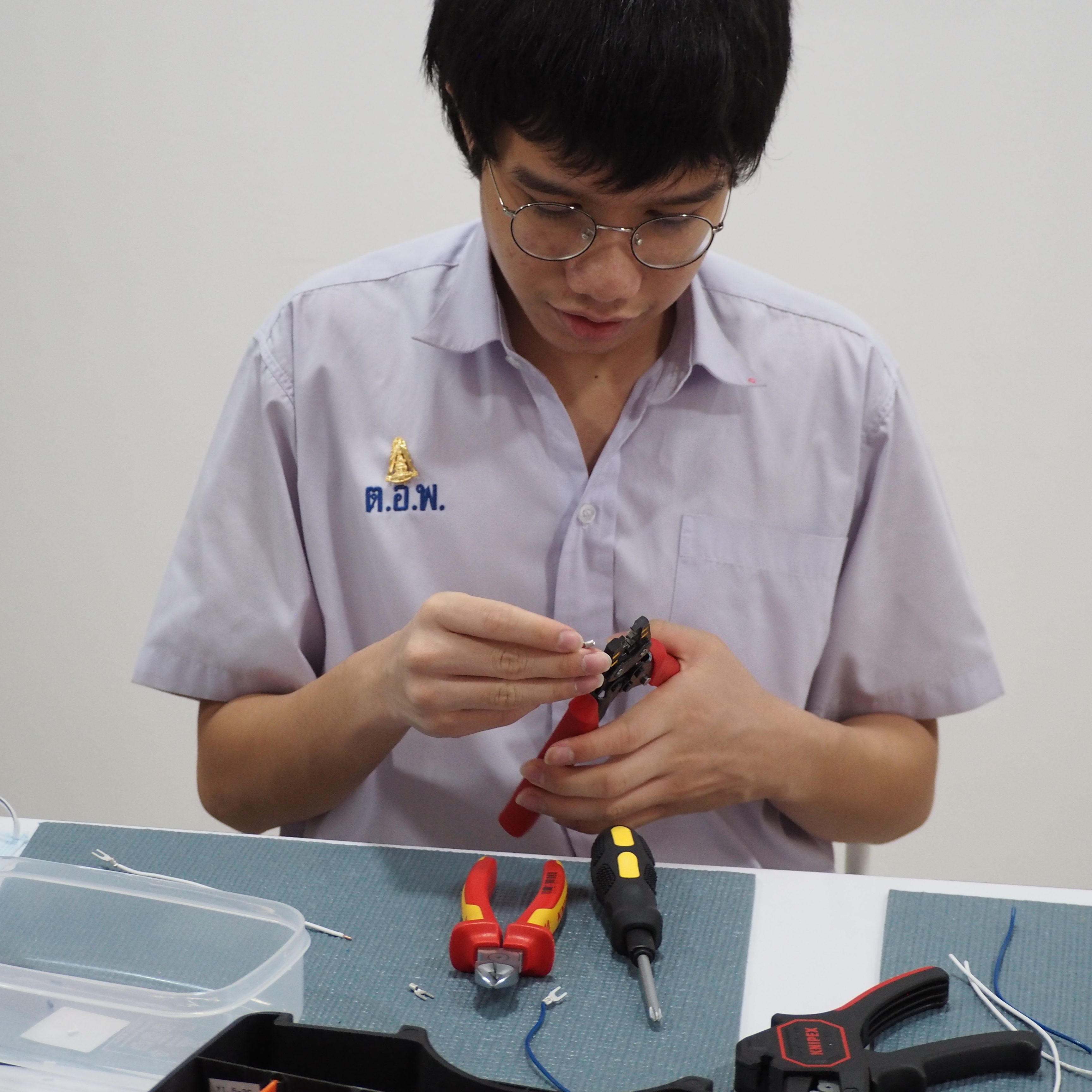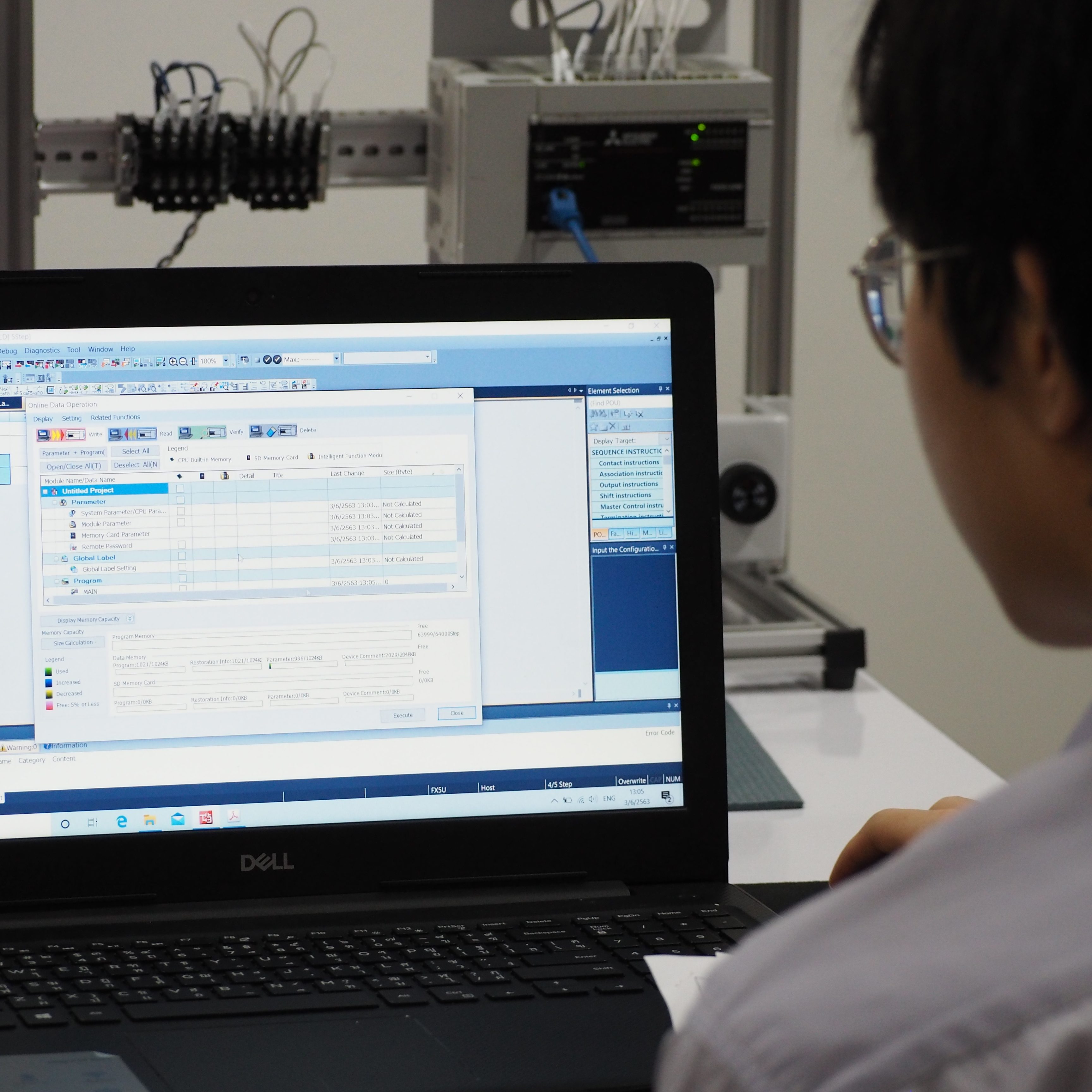 ทำการประกอบชุดฝึกปฏิบัติการขึ้นมาด้วยตัวเอง และทำการตรวจสอบความถูกต้องของชุดฝึก ทั้งในส่วนของระบบโครงสร้าง (Structure) ระบบไฟฟ้า (Electrical) การเดินสายไฟ (Wiring) การทดสอบระบบ (System Test) และการเขียนโปรแกรม PLC โดยใช้ PLC Controller ของ Mitsubishi รุ่น FX-5U