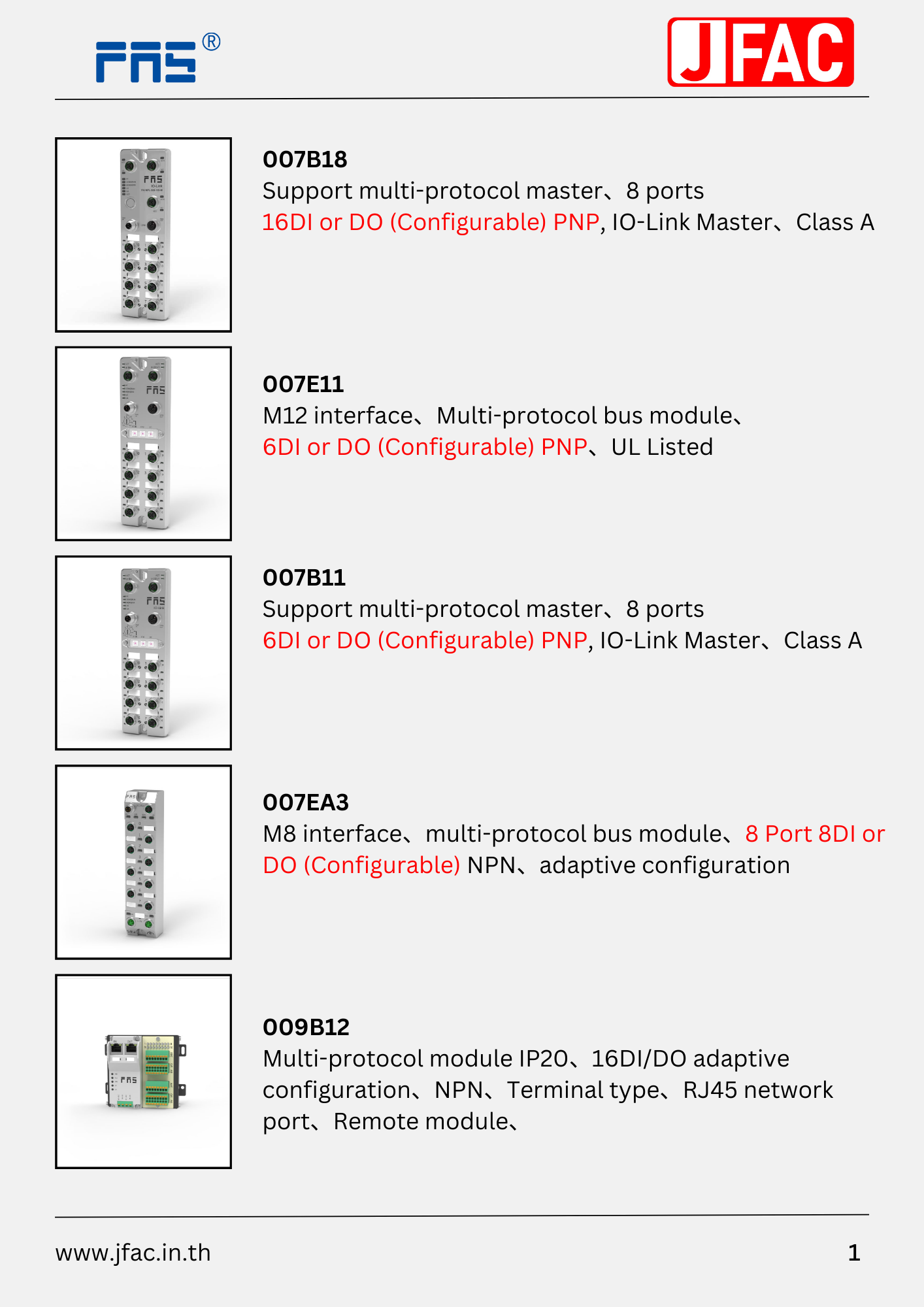 007B11 : Support multi-protocol master,8 ports,6DI or DO (Configurable) PNP, IO-Link Master, Class A