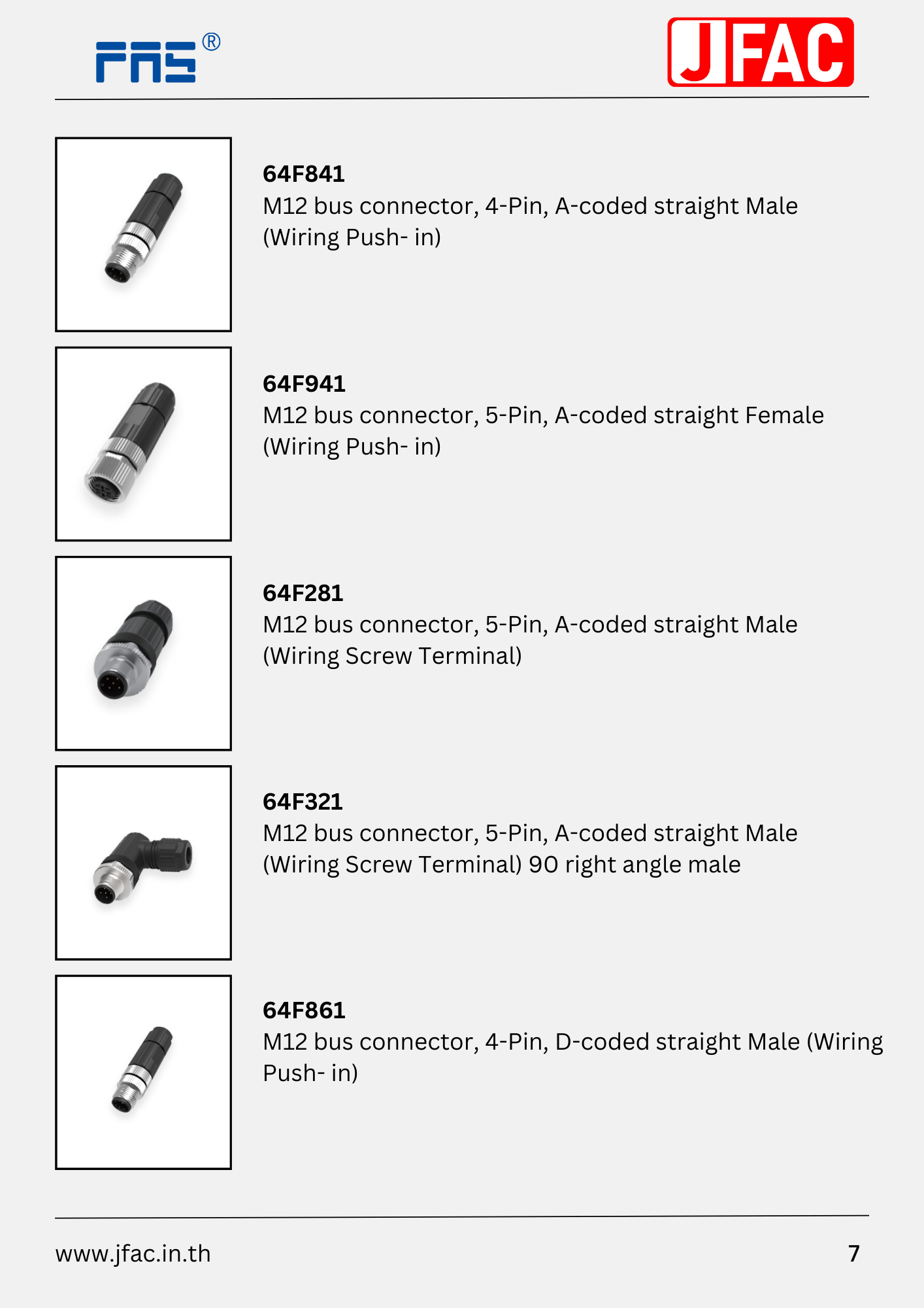 64F941 : M12 bus connector, 5-Pin, A-coded straight Female (Wiring Push- in)